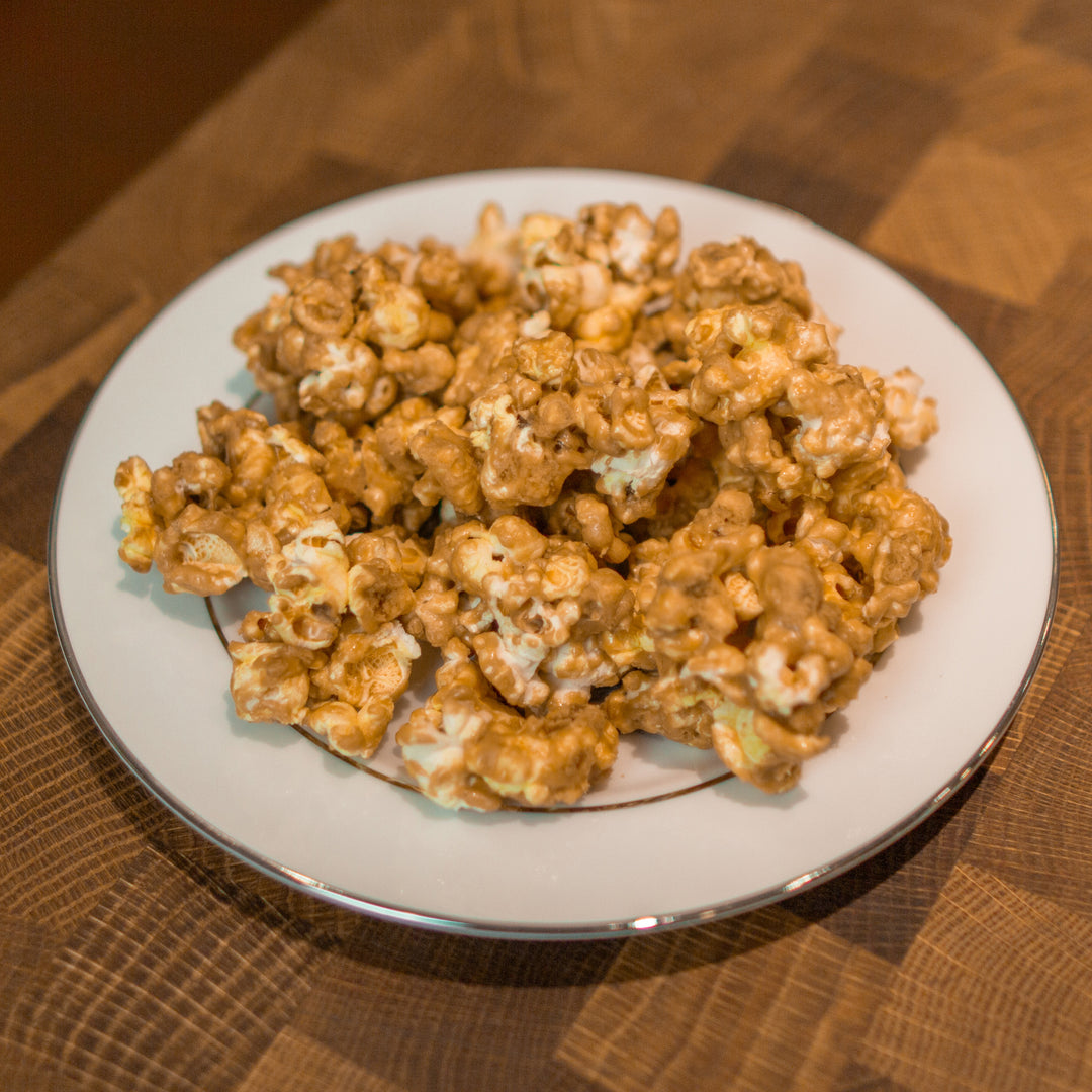 - Once everything is combined, pour the mixture over the popcorn and put in the oven that is preheated to 250 degrees Fahrenheit